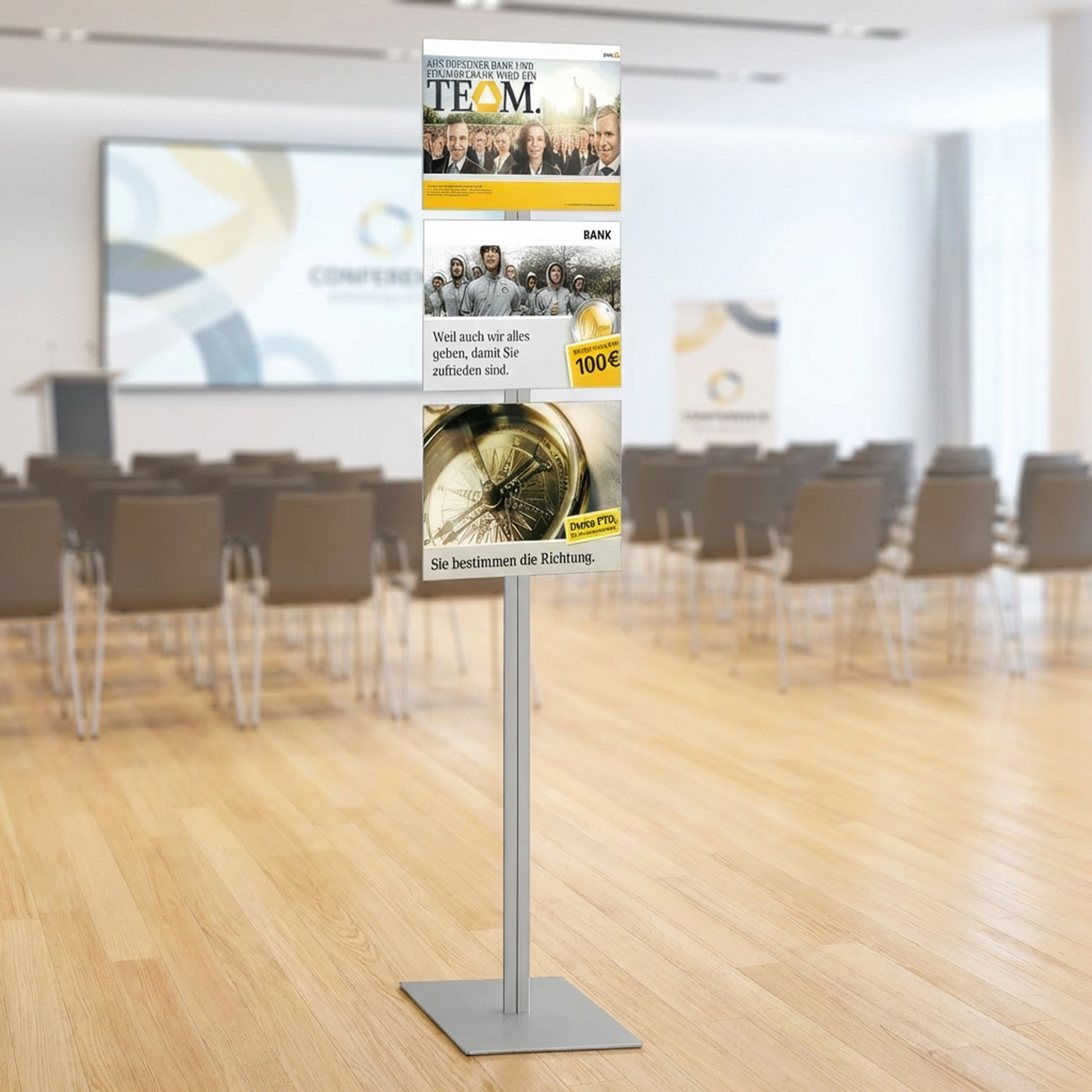 De randloze posterdisplay, de vlakke posterpocket en het slanke ontwerp benadrukken wat er echt toe doet: jouw informatie!